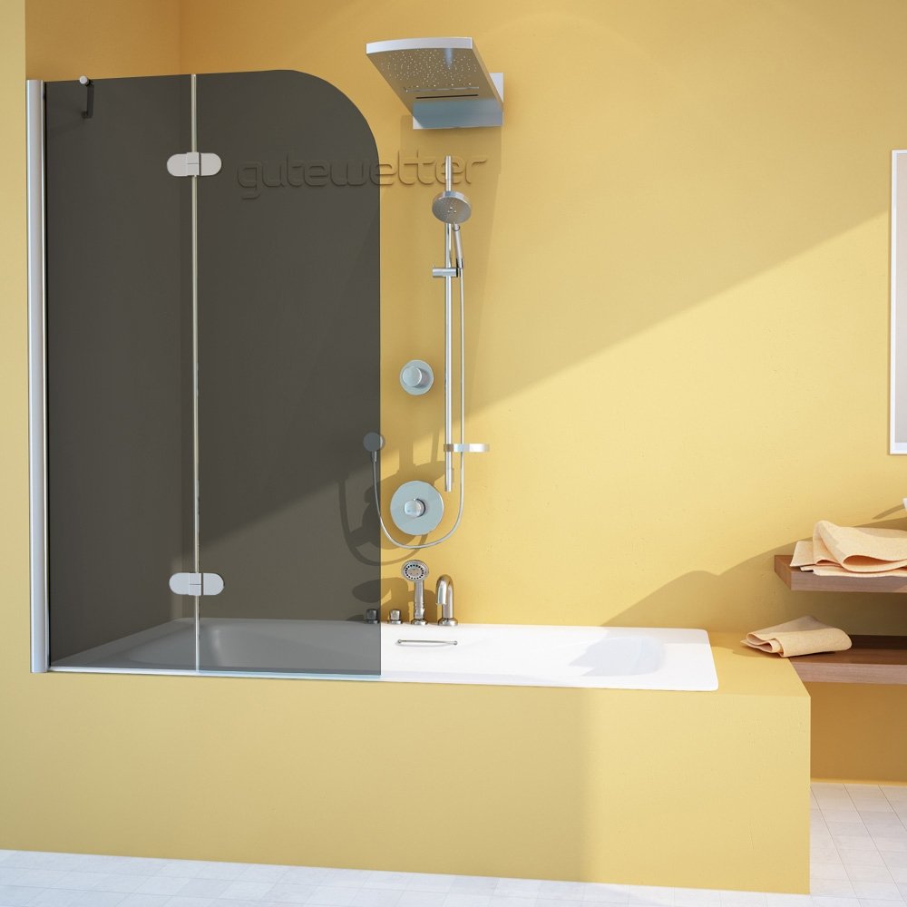 Шторка на ванну двухсегментная одна деталь поворотная наружу на 180° с подъемно-опускным механизмом LUX PEARL GV-102A производства фабрики GuteWetter.