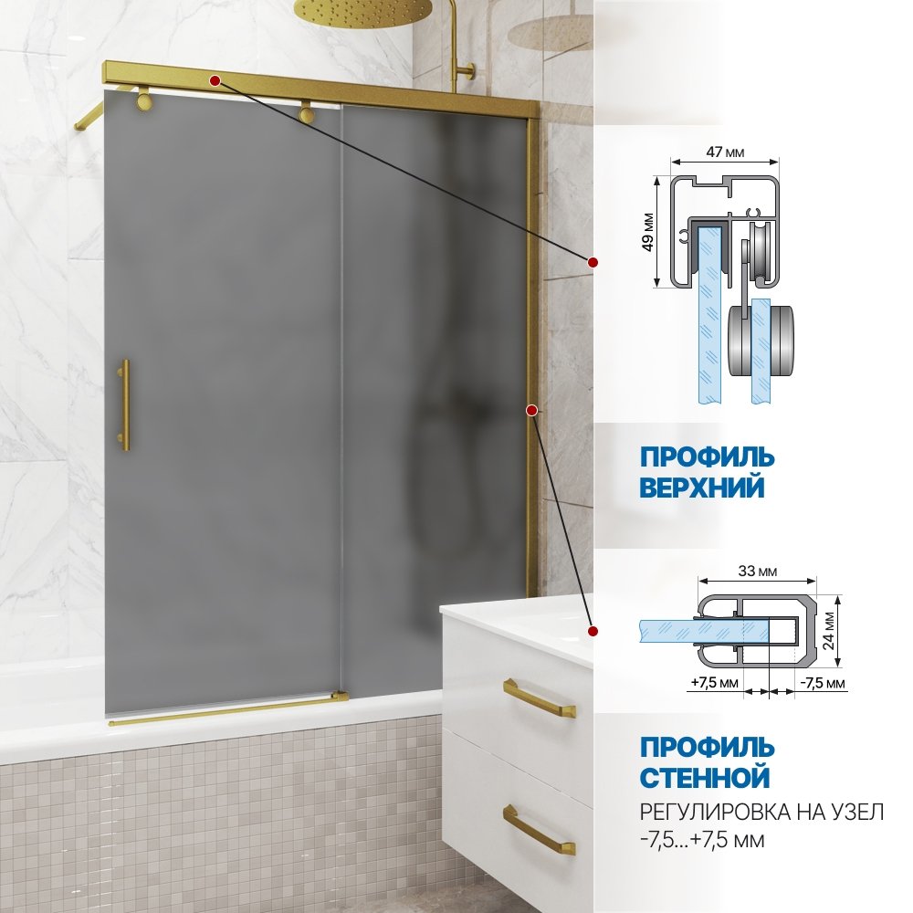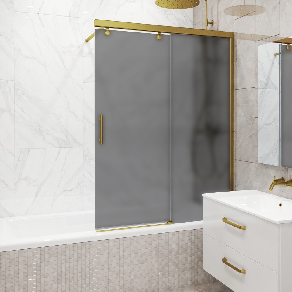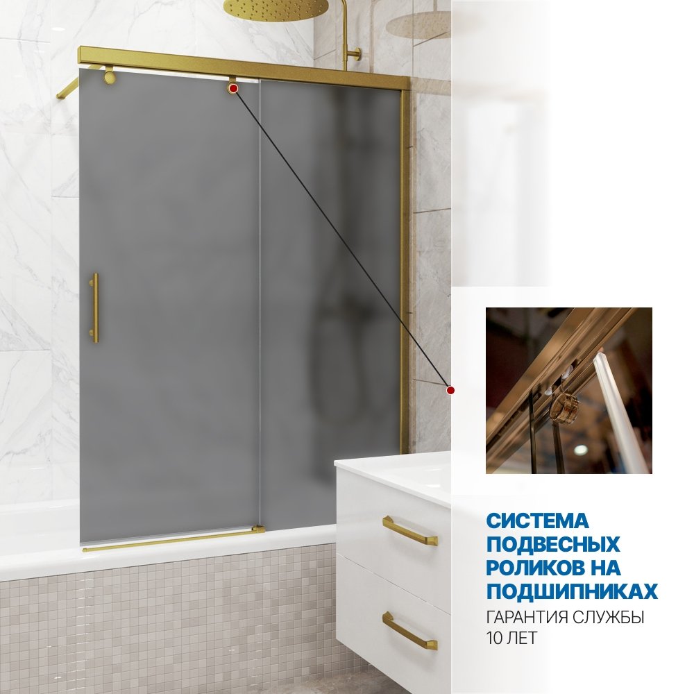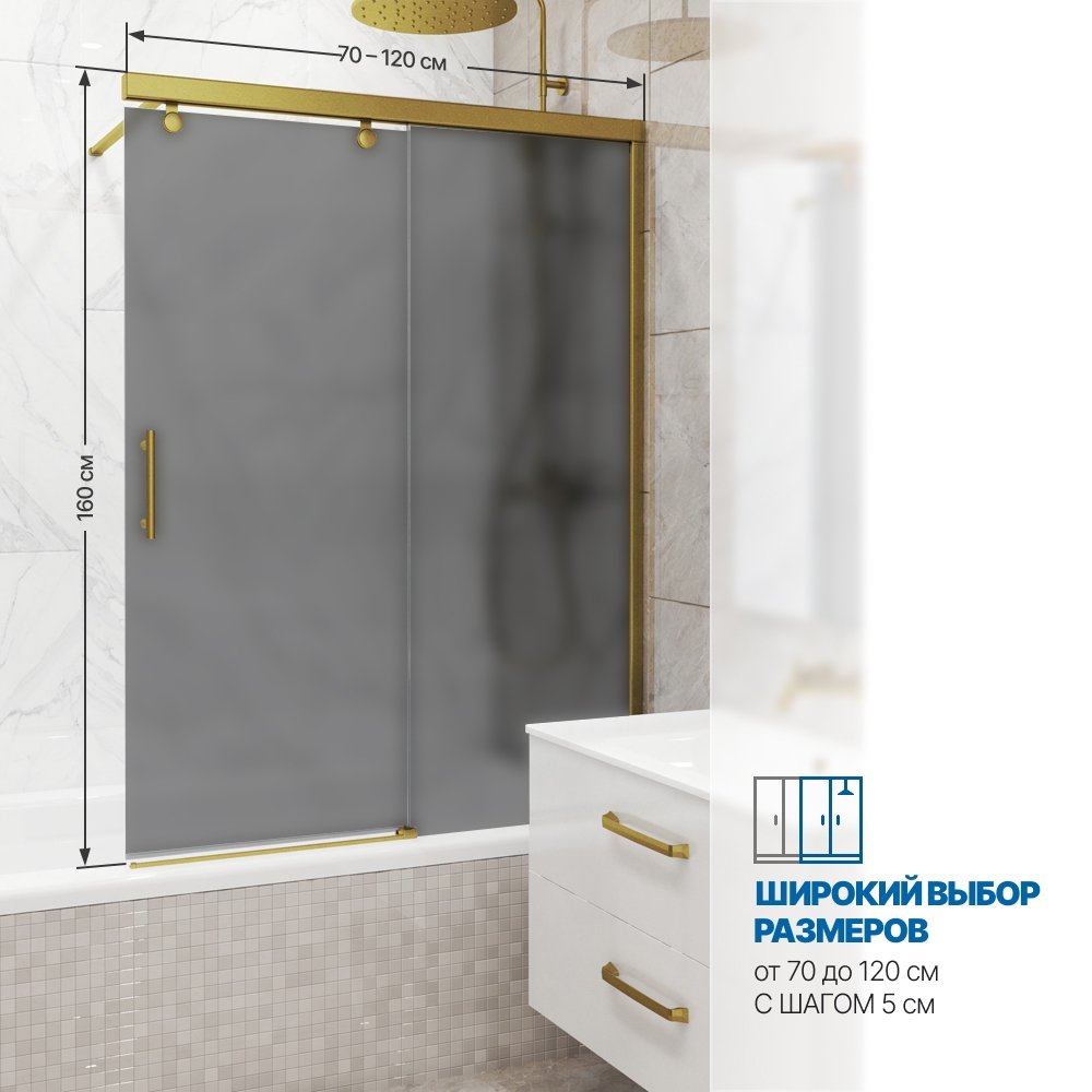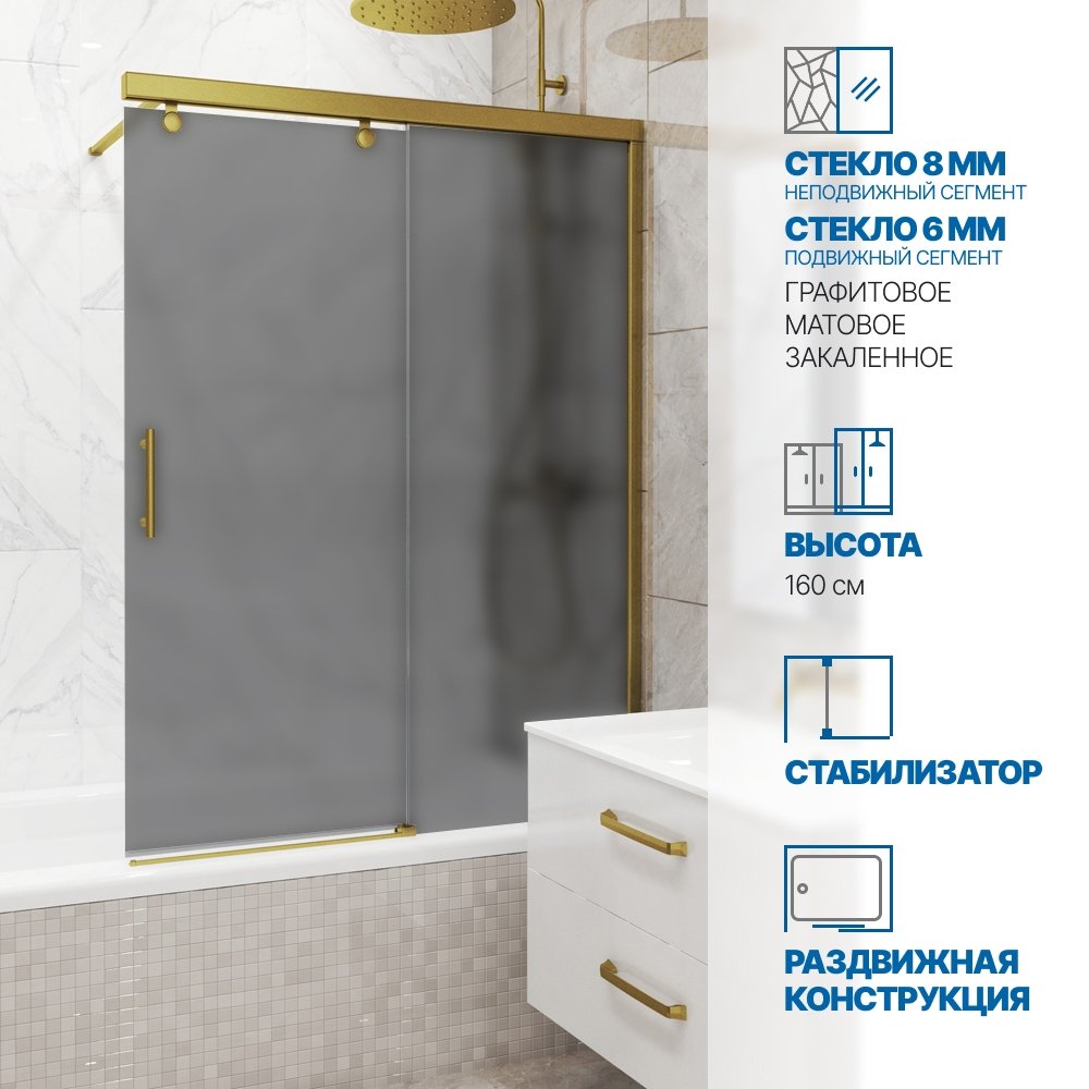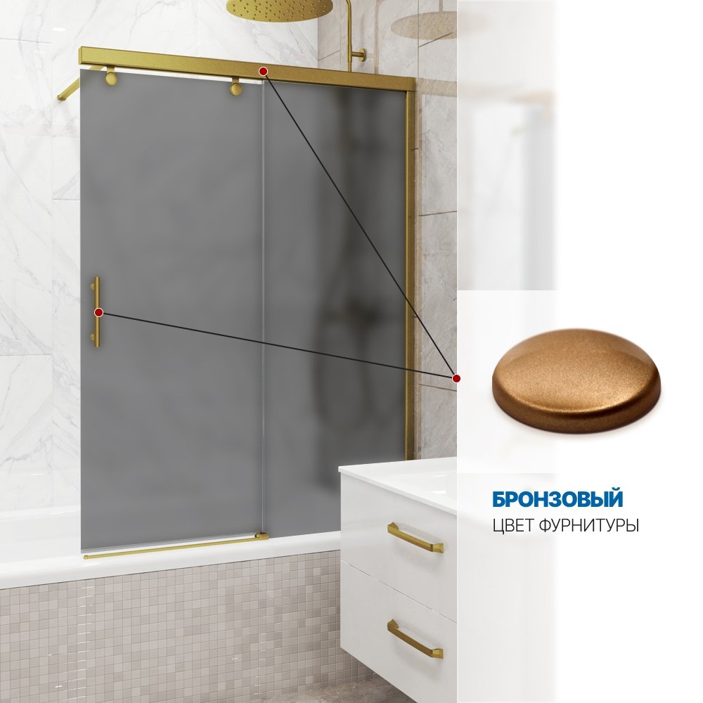 Шторка на ванну SLIDE PEARL GV-862 70x160 см, цвет фурнитуры бронзовый, цвет стекла графитовый матовый, стекло закаленное 8 мм / 6 мм, открывание двери левое / правое