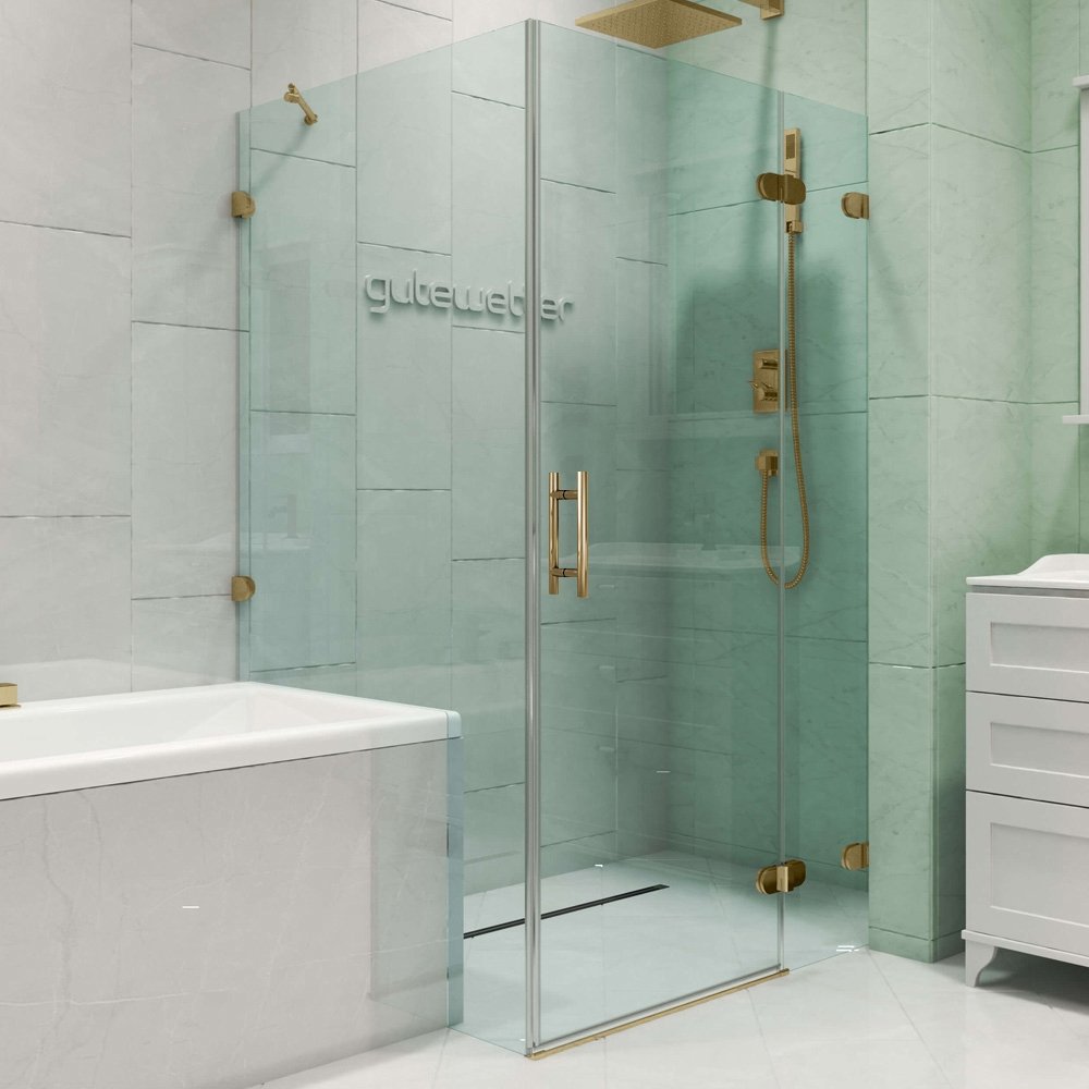 Душевой уголок LUX RECTAN GK-003V1-2522-CH02 80x90x200 см, цвет фурнитуры золотой гальванический, цвет стекла бесцветный, стекло закаленное 6 мм, открывание двери правое