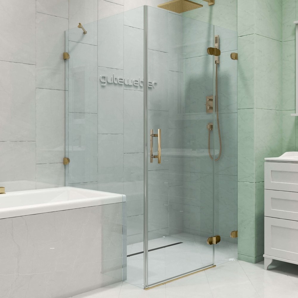 Душевой уголок LUX RECTAN GK-003V1-2522-CH02 80x90x200 см, цвет фурнитуры золотой гальванический, цвет стекла выбеленный, стекло закаленное 8 мм, открывание двери правое