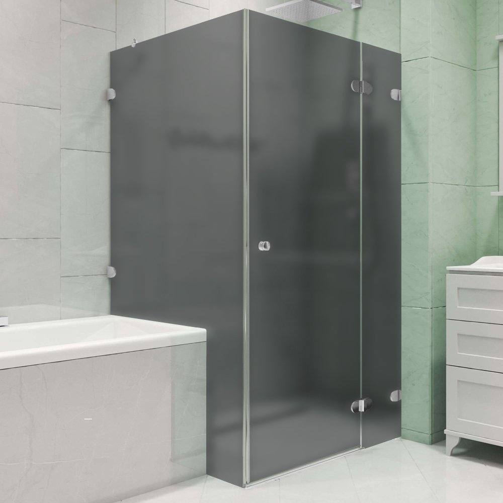 Душевое ограждение в бесцветном стекле является универсальным. Возможен монтаж как в левый, так и в правый угол, сторона открывания двери при этом не меняется. Изделие в матовом стекле не универсальное, необходимо выбрать нужный вам тип.
