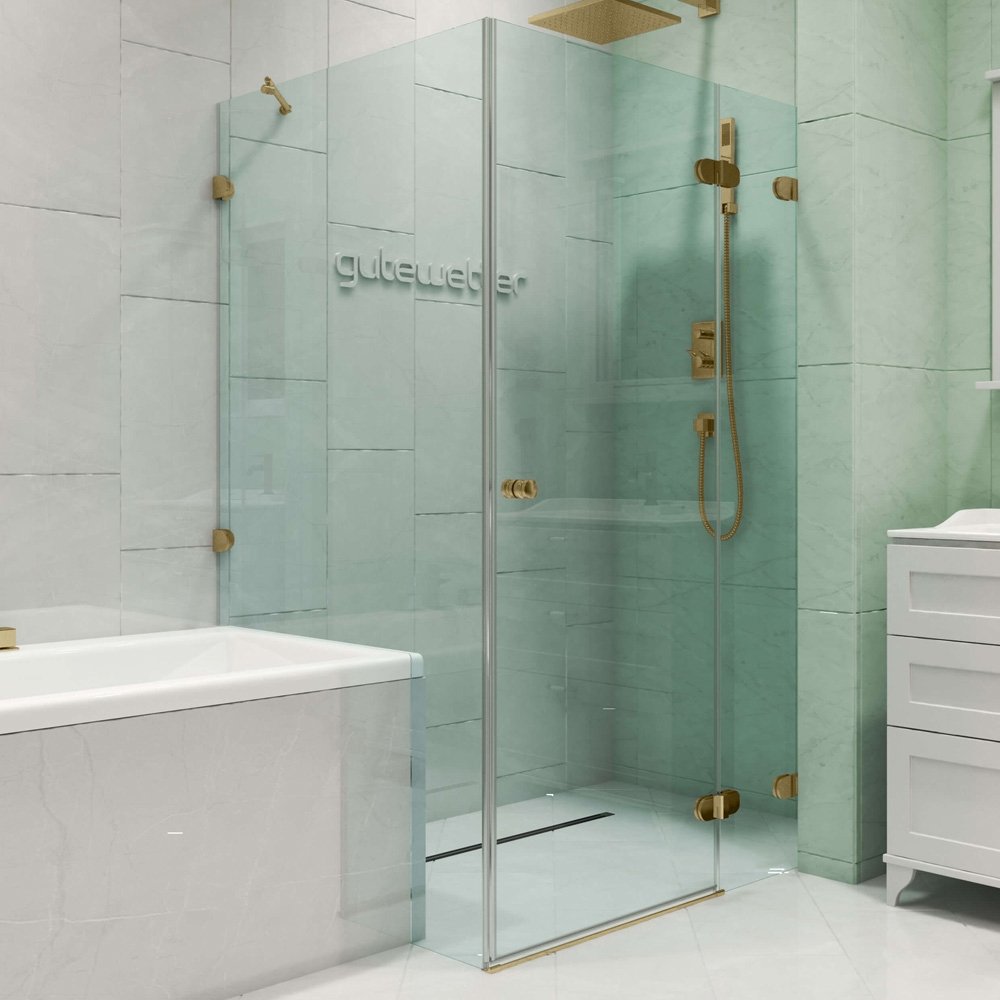 Душевой уголок LUX RECTAN GK-003V1-2522 80x90x200 см, цвет фурнитуры золотой гальванический, цвет стекла бесцветный, стекло закаленное 6 мм, открывание двери правое