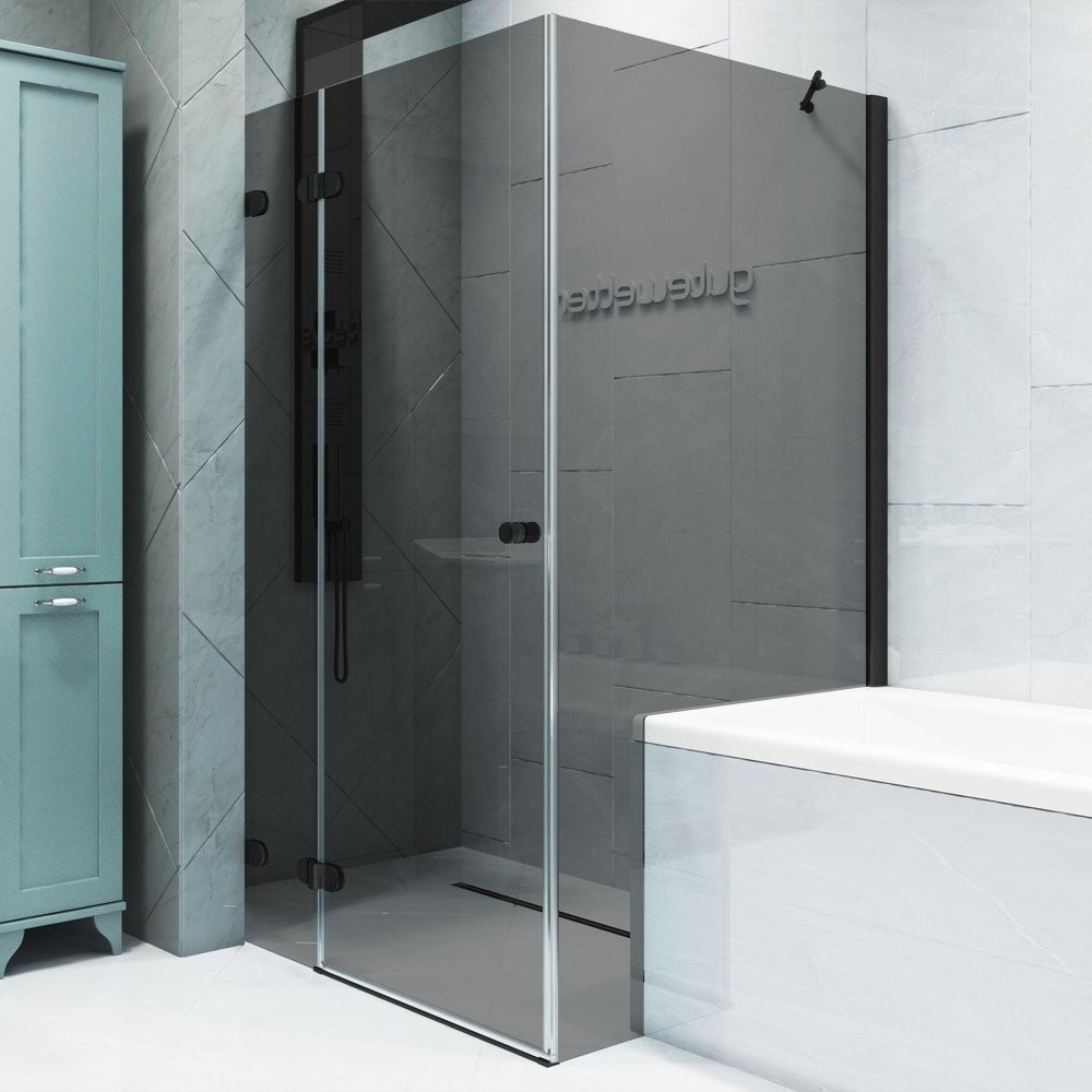 Душевой уголок LUX RECTAN GK-003V1P-2522 80x90x200 см, цвет фурнитуры черный матовый, цвет стекла графитовый, стекло закаленное 8 мм / 6 мм, открывание двери левое