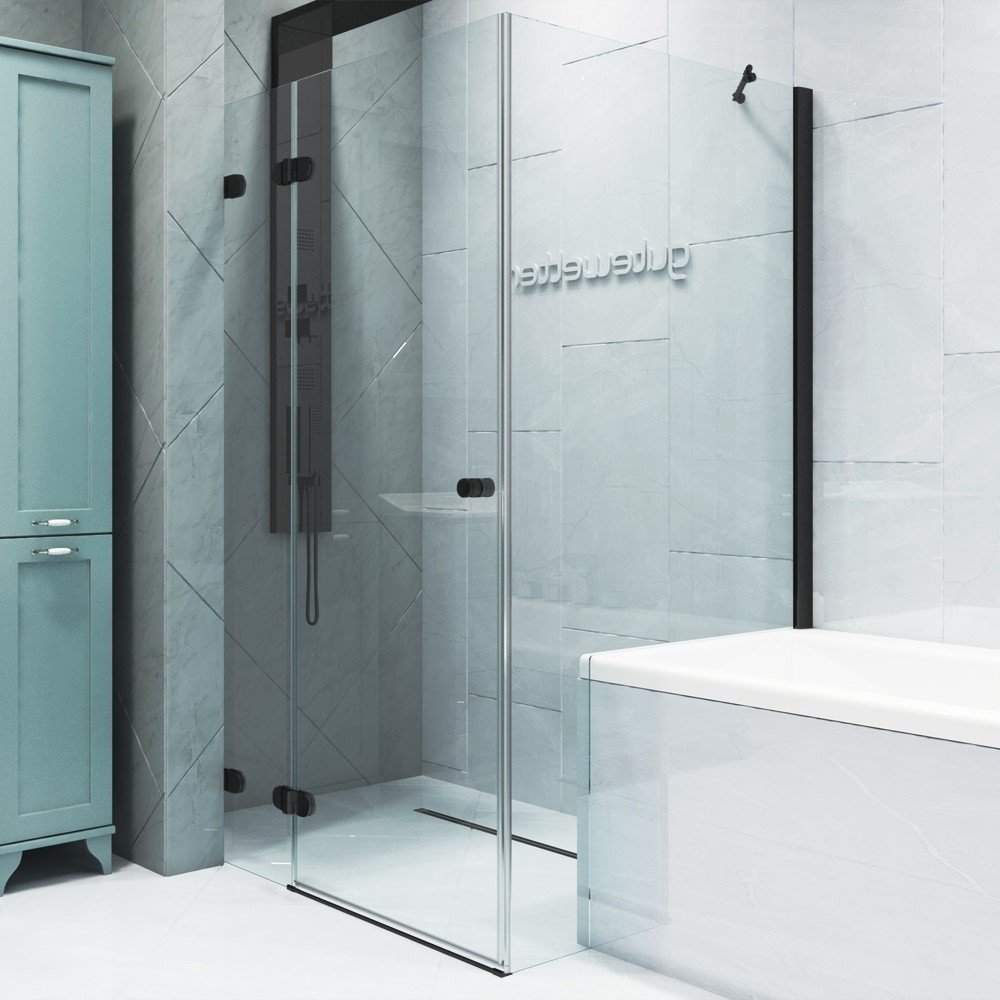Душевой уголок LUX RECTAN GK-003V1P-2522 80x90x200 см, цвет фурнитуры черный матовый, цвет стекла выбеленный, стекло закаленное 8 мм / 6 мм, открывание двери левое