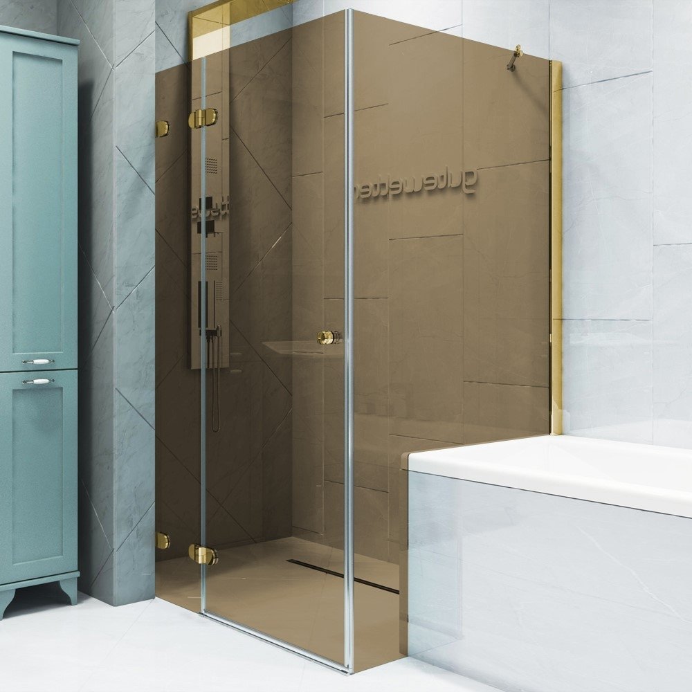Душевой уголок LUX RECTAN GK-003V1P-2522 80x90x200 см, цвет фурнитуры золотой металлик, цвет стекла бронзовый, стекло закаленное 8 мм, открывание двери левое