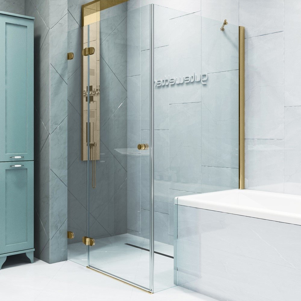 Душевой уголок LUX RECTAN GK-003V1P-2522 80x90x200 см, цвет фурнитуры золотой гальванический, цвет стекла выбеленный, стекло закаленное 8 мм, открывание двери левое