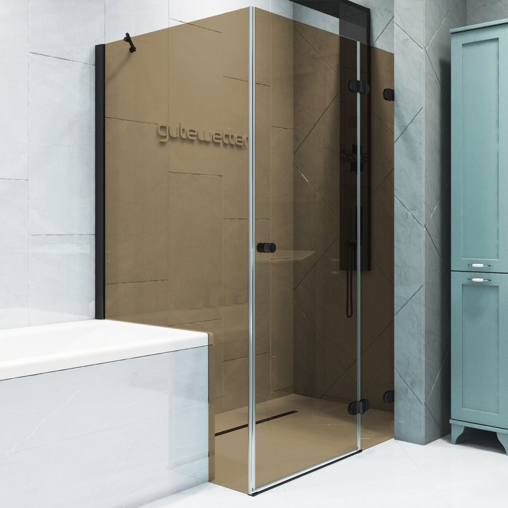Душевой уголок LUX RECTAN GK-003V1P-2522 80x90x200 см, цвет фурнитуры черный матовый, цвет стекла бронзовый, стекло закаленное 6 мм, открывание двери правое