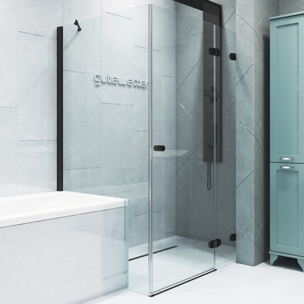 Душевой уголок LUX RECTAN GK-003V1P-2522 80x90x200 см, цвет фурнитуры черный матовый, цвет стекла выбеленный, стекло закаленное 8 мм / 6 мм, открывание двери правое