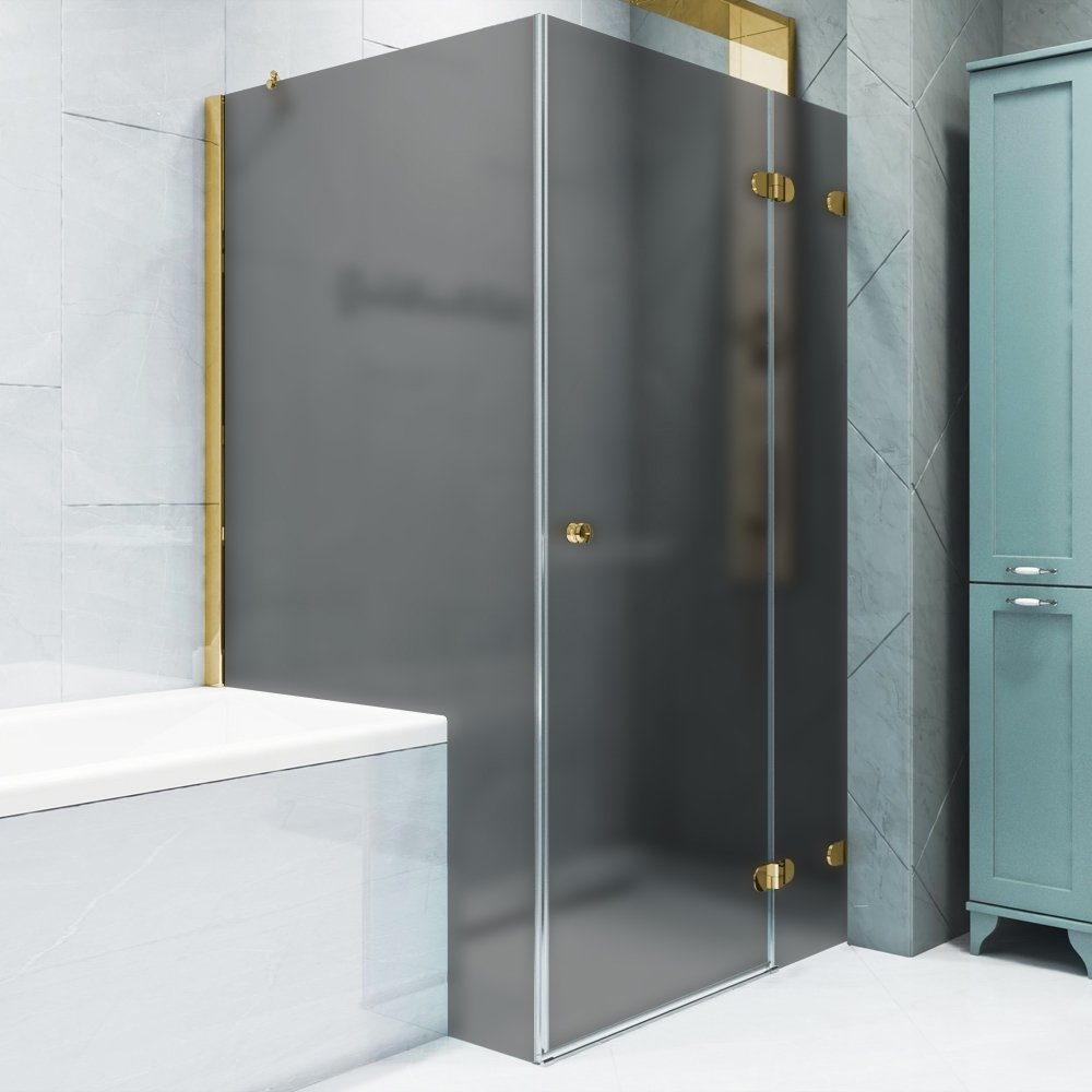 Душевой уголок LUX RECTAN GK-003V1P-2522 80x90x200 см, цвет фурнитуры золотой металлик, цвет стекла графитовый матовый, стекло закаленное 8 мм, открывание двери правое