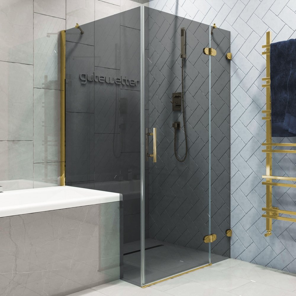 Душевой уголок LUX RECTAN GK-003V1P-CH02 80x90x200 см, цвет фурнитуры золотой металлик, цвет стекла графитовый, стекло закаленное 6 мм, открывание двери правое