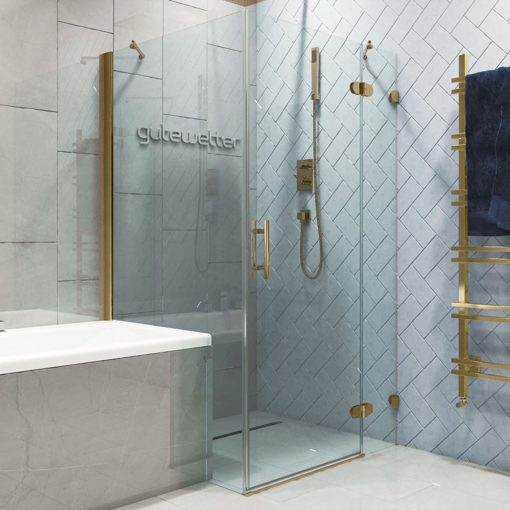 Душевой уголок LUX RECTAN GK-003V1P-CH02 80x90x200 см, цвет фурнитуры золотой гальванический, цвет стекла выбеленный, стекло закаленное 6 мм, открывание двери правое