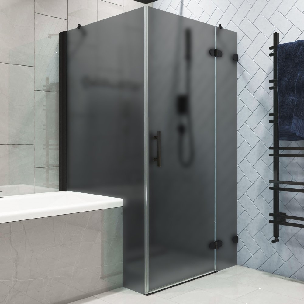 Душевой уголок LUX RECTAN GK-003V1P-CH02 80x90x200 см, цвет фурнитуры черный матовый, цвет стекла графитовый матовый, стекло закаленное 8 мм / 6 мм, открывание двери правое