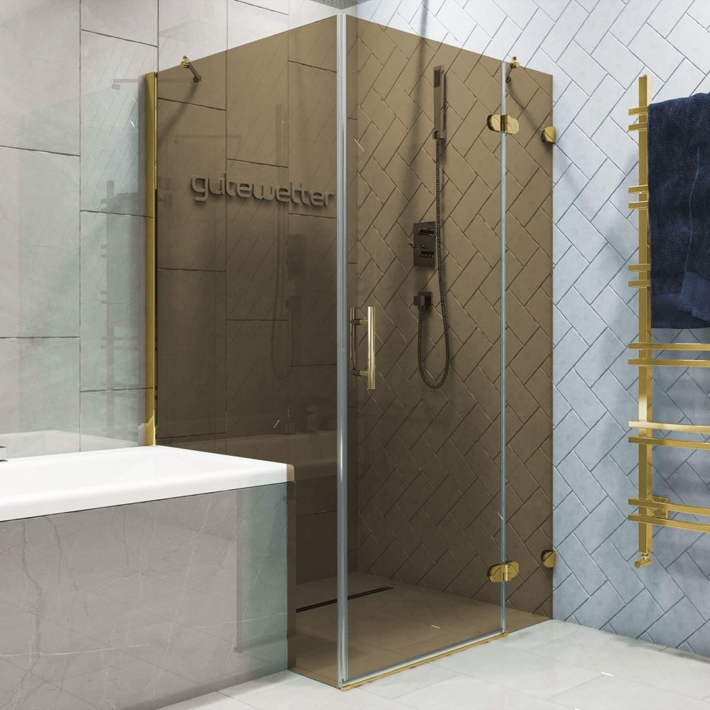 Душевой уголок LUX RECTAN GK-003V1P-CH02 80x90x200 см, цвет фурнитуры золотой металлик, цвет стекла бронзовый, стекло закаленное 8 мм, открывание двери правое