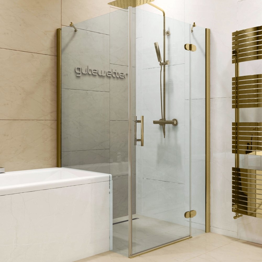 Душевой уголок LUX RECTAN GK-003V1PP-CH02 80x90x200 см, цвет фурнитуры золотой гальванический, цвет стекла выбеленный, стекло закаленное 8 мм / 6 мм, открывание двери правое