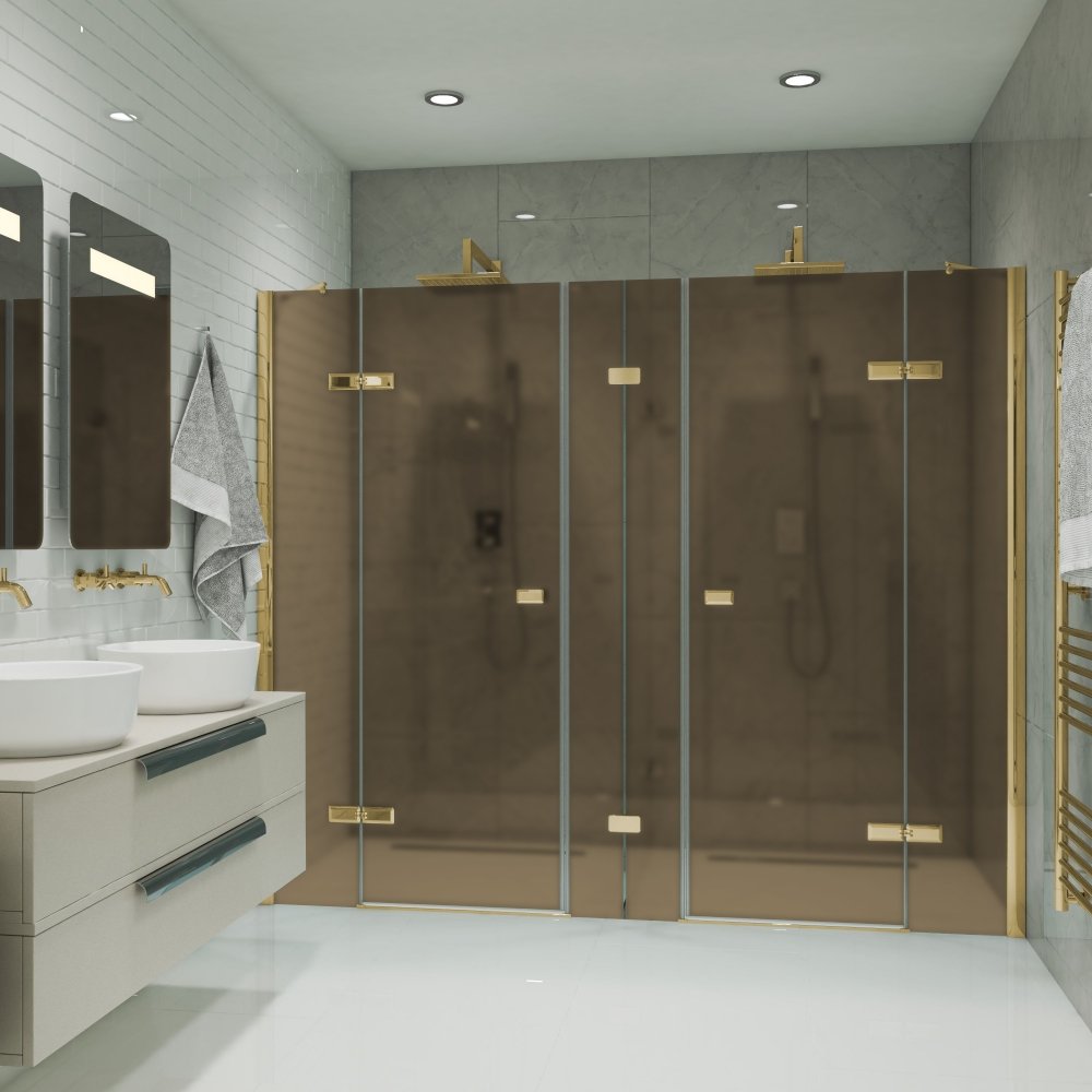 Душевой уголок TREND RECTAN GK-886PT 70x210x200 см, цвет фурнитуры золотой металлик, цвет стекла бронзовый матовый, стекло закаленное 8 мм, открывание двери левое / правое