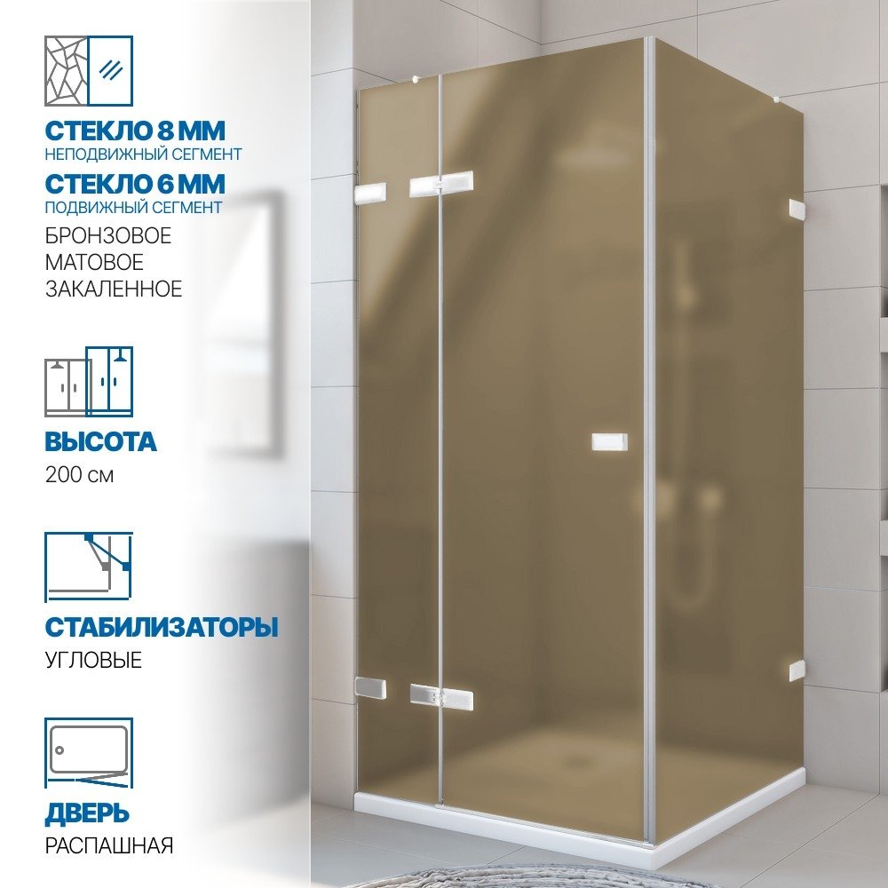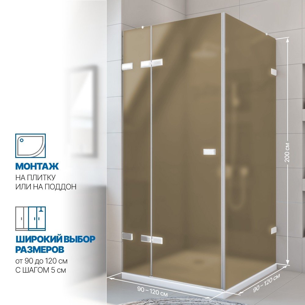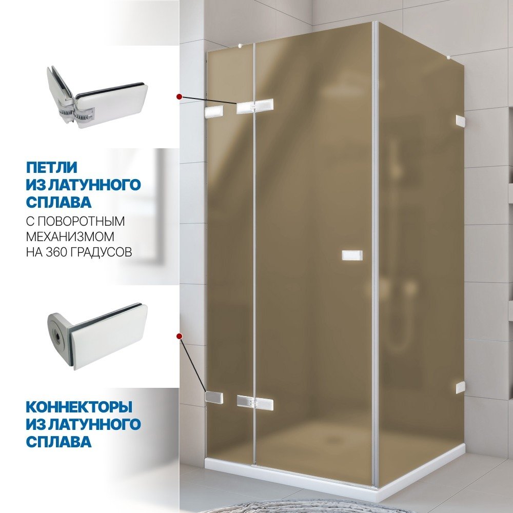Душевой уголок TREND SQUARE GK-863 90x90x200 см, цвет фурнитуры белый матовый, цвет стекла бронзовый матовый, стекло закаленное 8 мм / 6 мм, открывание двери левое / правое